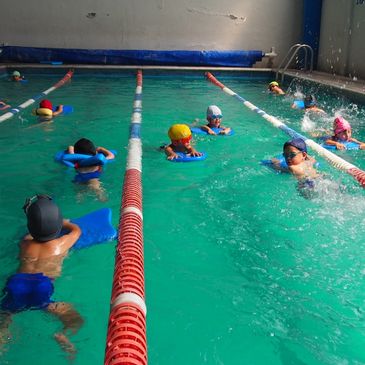 La natación es un programa de 7 niveles con evaluaciones periódicas en donde el padre va cambiando el color de gorra de acuerdo al nivel alcanzado del alumno.